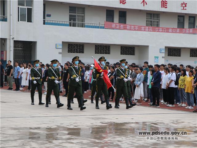 [图]市工业学校在教学楼前举行爱国升旗仪式
