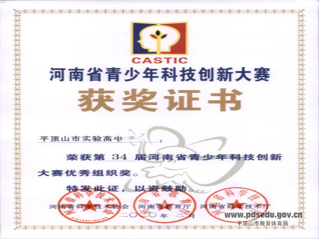 [图]市实验高中喜获河南省第34届青少年科技创新大赛优秀组织单位