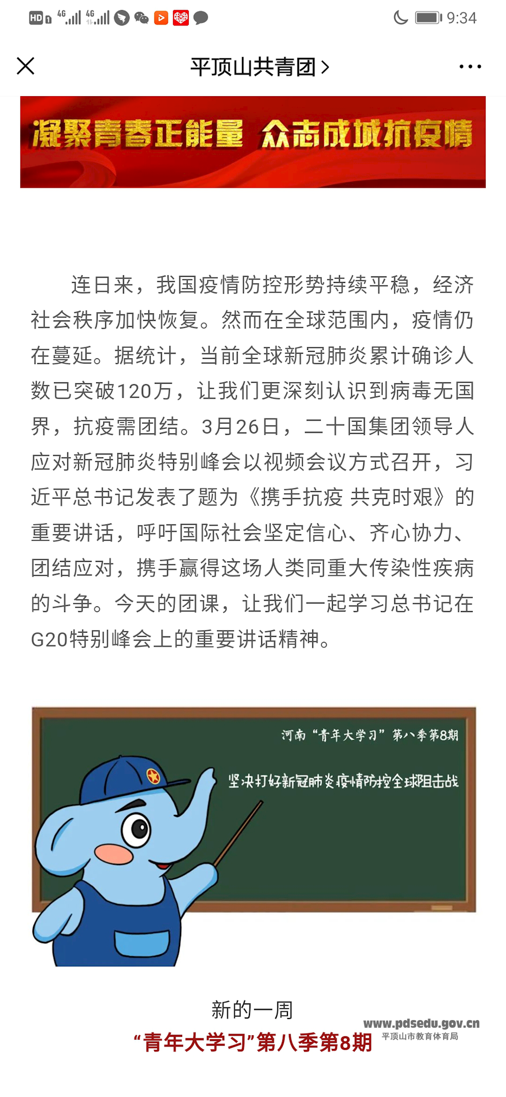 [图]市实验中学疫情防控期间坚持开展“青年大学习”网上主题团课活动