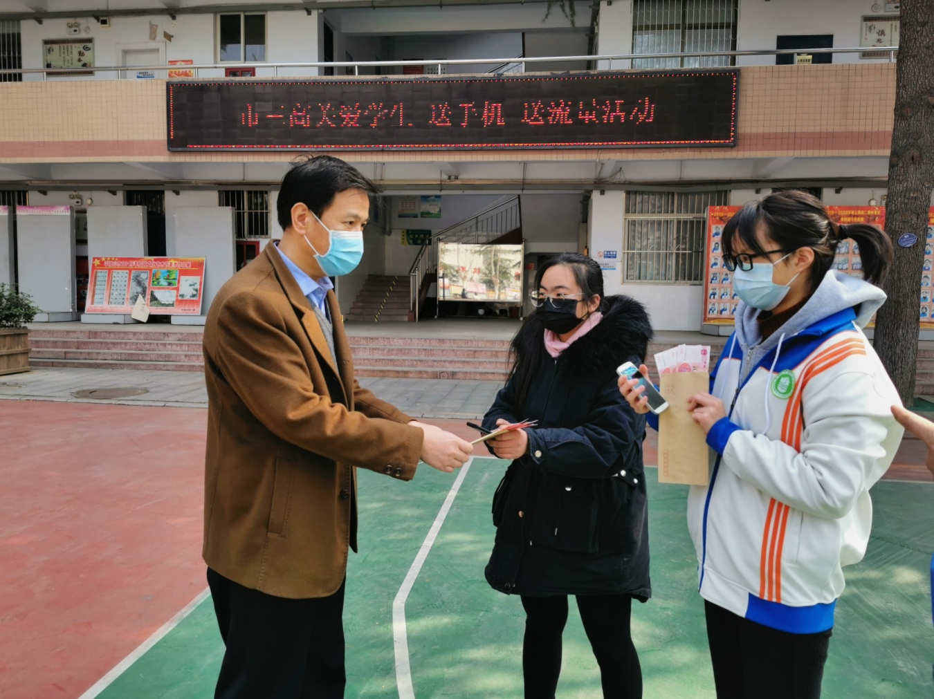 [图]市教体局党组成员、副调研员李俊峰同志一行三人到八中检查指导疫情防控工作