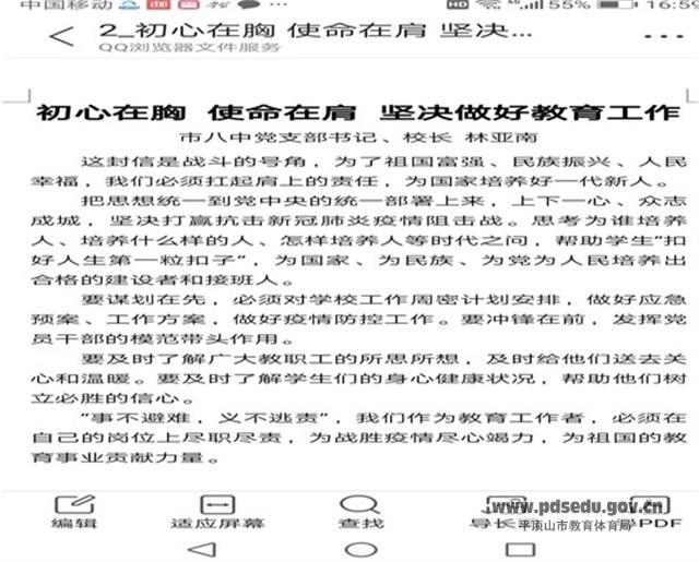 [图]师生共学一封信 鼓足干劲战“疫”魔 ——市八中师生学习教体局致全体学生的一封信