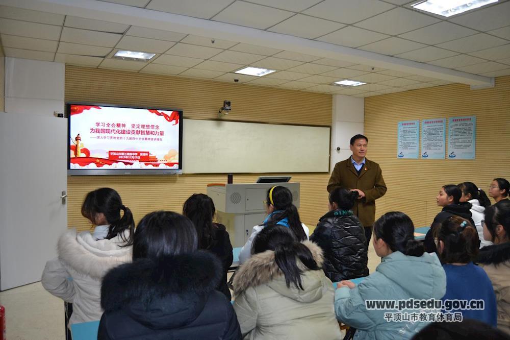 [图]市三高校长张建岭为全校师生宣讲十九届四中全会精神