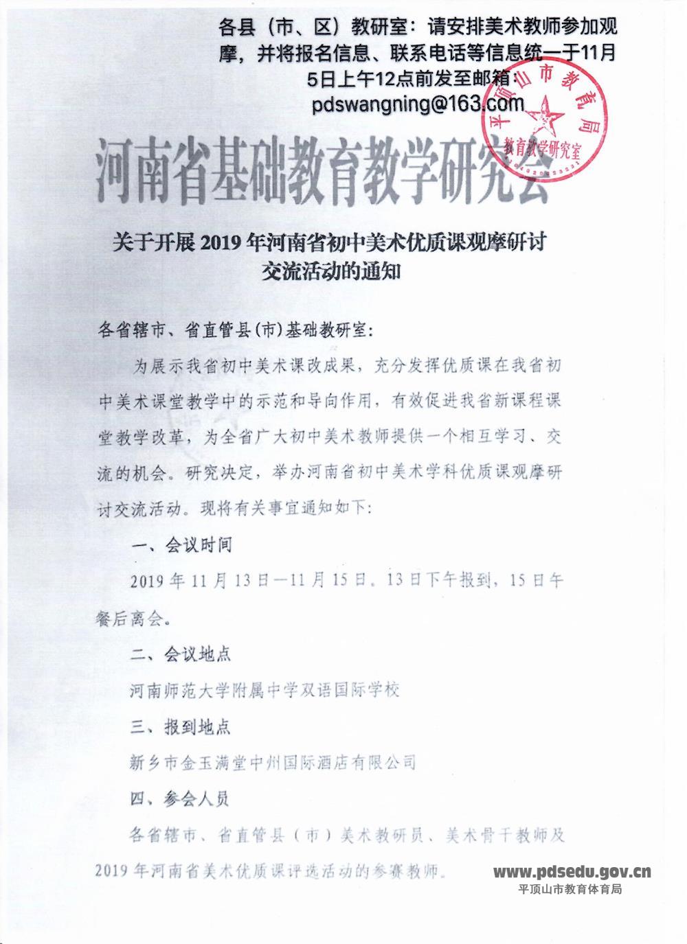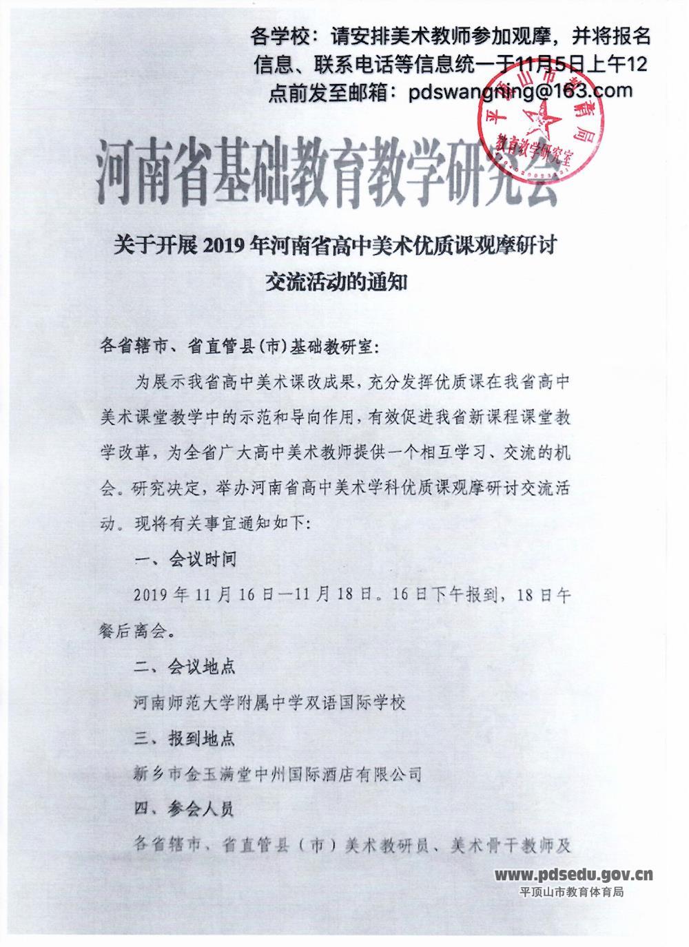关于开展2019年河南省高中美术优质课观摩研讨交流活动的通知