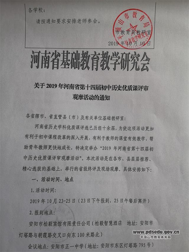 转发关于2019年河南省第十四届初中历史优质课评审观摩活动的通知