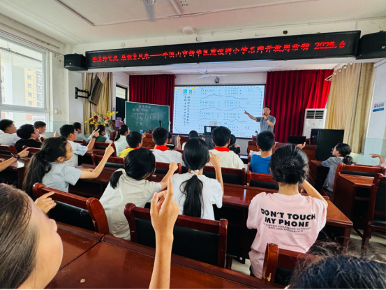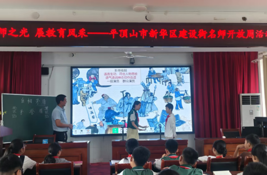 新华区建设街小学以“聚名师之光,展教育风采”为主题开展活动。苏豪珍校长带来道德与法治课《屹立在世界的东方——中国人民站起来了》,以历史脉络为主线,结合图片、视频,讲述中华人民共和国成立的艰辛历程,培养学生的民族自豪感与责任感。高海广老师带领学生走进文言文世界,以情景剧活化经典,解读《自相矛盾》,让学生在互动中感悟“自相矛盾”的哲理,尽显语文教学的趣味性与文化传承。冯军锋老师带来的《数字与信息》,巧妙地将数学知识与生活紧密相连,学生在轻松愉快的氛围中掌握了数字编码的规律。芦俊浩老师带来的《西风的话》,大胆运用AI即兴创作手法,为传统的音乐课堂注入了新的活力。