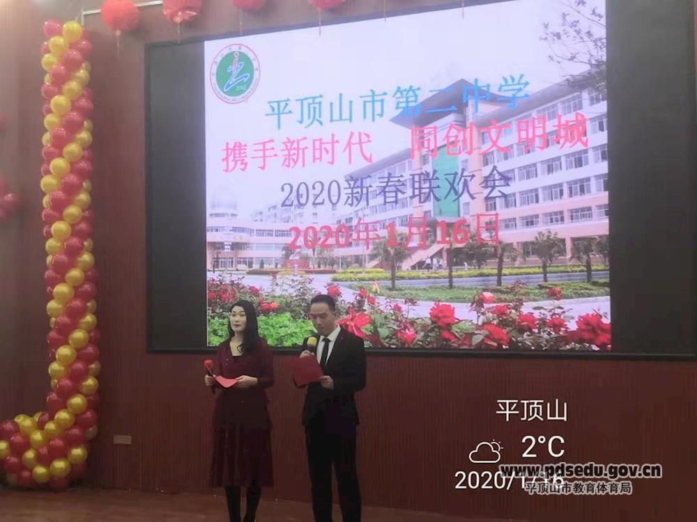1月18日下午,平顶山市第二中学阶梯教室,流光溢彩,欢声笑语。一场富有艺术魅力而充满昂扬激情的联欢会如期而至。市二中校长闫纲绍和学校领导班子成员与教职员工齐聚一堂,共度欢乐时光。