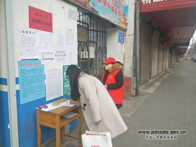 同时,为充分发挥党组织的战斗堡垒作用和广大党员干部的先锋模范作用,学校成立了临时党支部。在临时支部书记杨菱的带领下,12名党员志愿者分成4个组,对家属院近140户住户逐一走访了解,掌握了第一手资料,并坚持每天通过电话、微信等形式进行排查登记上报,受到了教职工与住户的理解和肯定。
