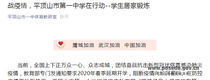 在防控疫情严峻形势下,平顶山市一中积极响应教育部“把孩子身心健康放在第一位,倡导广大学生在家里进行科学、适度的体育锻炼,增强体质,增进健康”的思想,积极开展线上阳光大课间活动。
