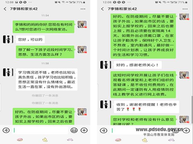 为深入贯彻习近平总书记重要讲话精神和重要指示,落实市教体局〔2020〕58号文关于在疫情防控期间开展网络家访工作的通知,进一步发挥全体教师在疫情防控服务教学、服务学生的作用,近日,市十三中政教处迅速行动,制定线上家校联系方案和记录表,配合学校线上课堂“停课不停学”活动部署,开展“同心战疫情,同屏共家访”线上家访活动。