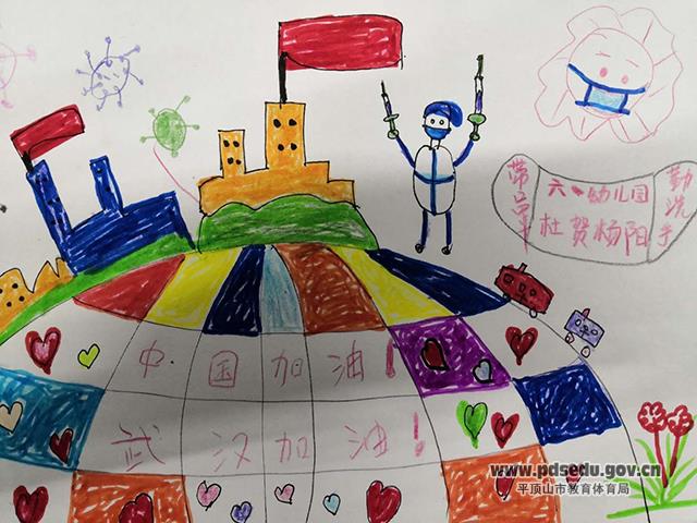 童心童画同抗疫,致真致诚暖人心。是特殊教育学校六一幼儿园的孩子们通过自己的方式,以画笔传递童心,以童心鼓舞人心,用心灵点燃生命的灯,用坚强编织美丽的彩虹,伸出温暖的手,有爱才会永恒,无穷的力量都在逆行中爆发,祖国加油!