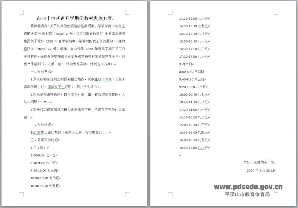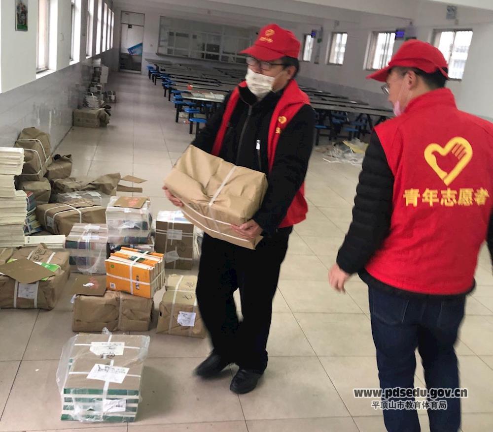 市四十中积极响应平顶山市教育体育局部署,安全有序地完成2020年春季纸质教材发放工作。