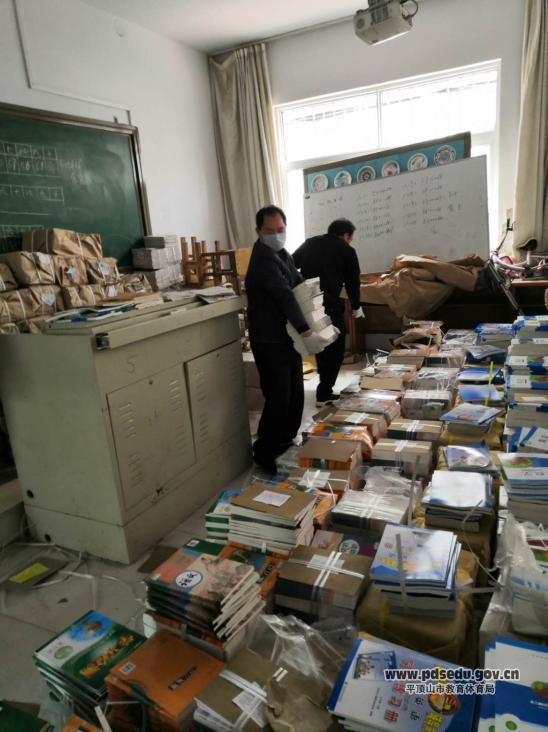 在校长乔延峰的带领下,参与发放教材的老师齐心协力、密切配合,使整个分书、搬书、发书的过程安全有序,保证了教材发放工作顺利进行,共同书写了一曲“发教材 战疫情”的凯歌。