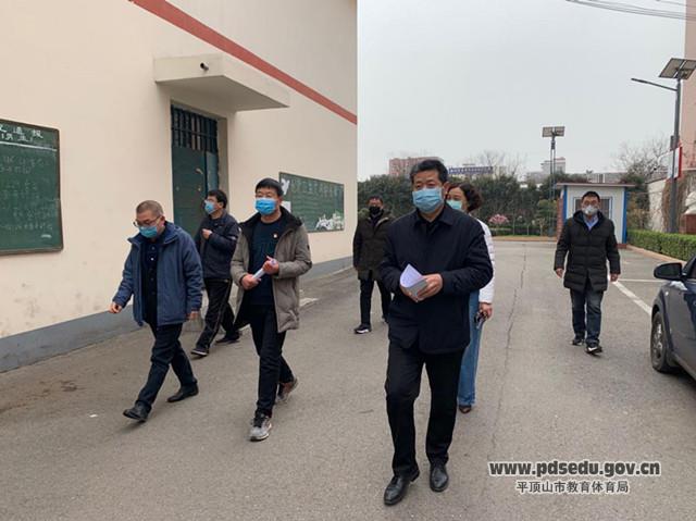 为进一步做好学校疫情防控工作,防止校园聚集性疫情发生,根据《河南省新冠肺炎疫情防控指挥部教育系统工作专班办公室关于对学校疫情防控情况进行全面排查的紧急通知》(豫疫防教专办〔2020〕4号)精神,按照属地管理原则,3月2日上午,汝州市教体局局长朱同正、副局长史小风、汝州市政府教育督导室副主任闫景铂一行来到平顶山外国语学校,对平顶山市外国语学校疫情防控工作进行检查。