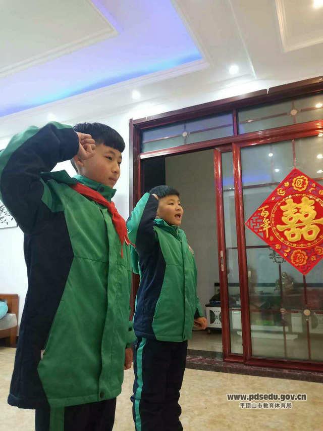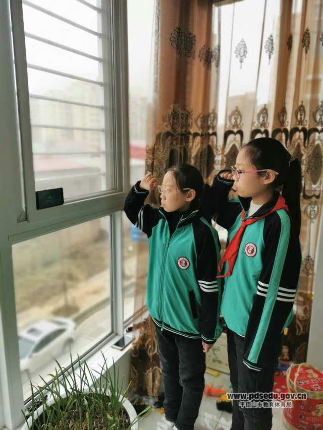 3月2日上午8:00,鲁山县实验学校小学部全体师生在手机、电脑前集结,举行一次特殊而庄严的线上升旗仪式。