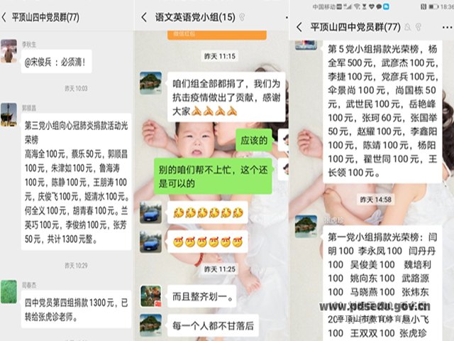 活动本着自觉自愿原则,充分尊重每个党员的意愿。活动发起后,校领导班子带头捐款,广大党员积极响应,踊跃参与,通过微信红包、转账等形式纷纷捐款,表达对抗击疫情工作的关心支持,彰显了“一方有难、八方支援”大爱精神,体现了共产党人的使命与担当。