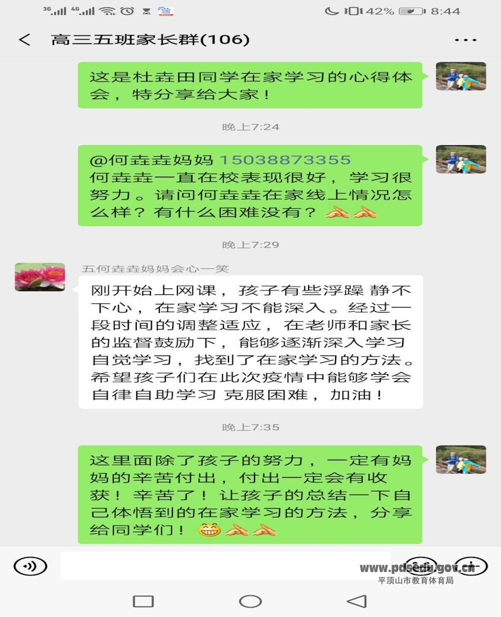 根据市教体局《关于在疫情防控期间开展网络家访的通知》精神,市二中及时通过微信群、钉钉群等网络平台向班主任传达网络家访的要求,全体班主任积极行动,认真落实,网络家访活动广泛开展。