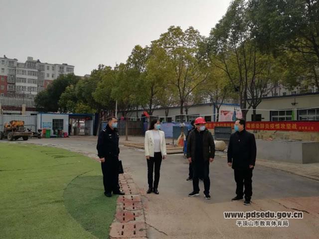 3月2日,市湛河区北渡分局副局长史英带领社区大队队长宁振山和社区民警,莅临市十三中对疫情防控工作及教学楼重建工程进行走访查看。