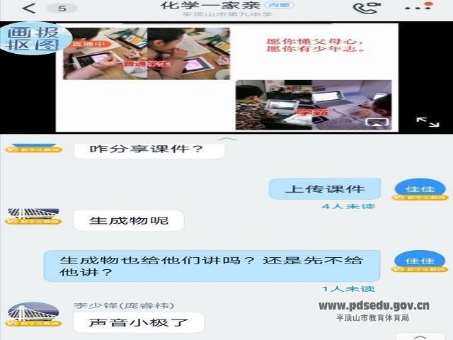 直播时,由于不断的试播,余学工老师已经对钉钉软件的各种功能运用自如,熟练的和学生进行互动,将所学过的知识进行总结,并对学生遇到的问题进行讲解,在余学工教师精炼和幽默的语言感染下,学生积极提问,认真思考。而青年教师郭佳佳也敢于担当,在化学组教师的帮助下,有序的开展直播,并取得了学生的一致好评。