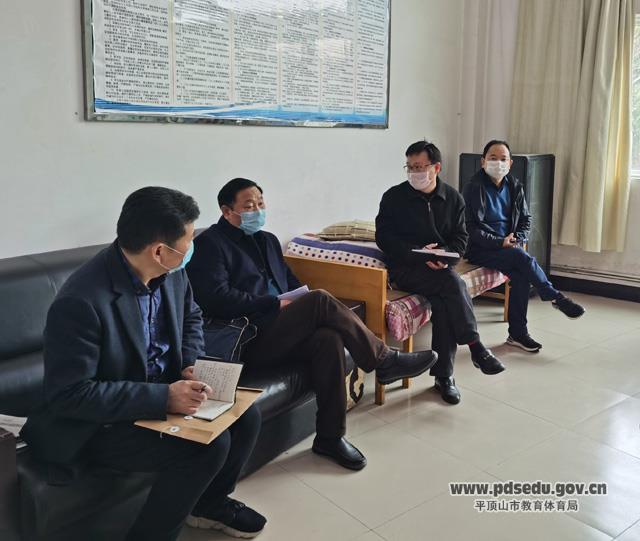 3月3日下午,市教体局副局长张国顺带领局财务科科长杨凯伟、发规科科长赵宏亮等一行4人,到市十二中检查疫情防控工作。