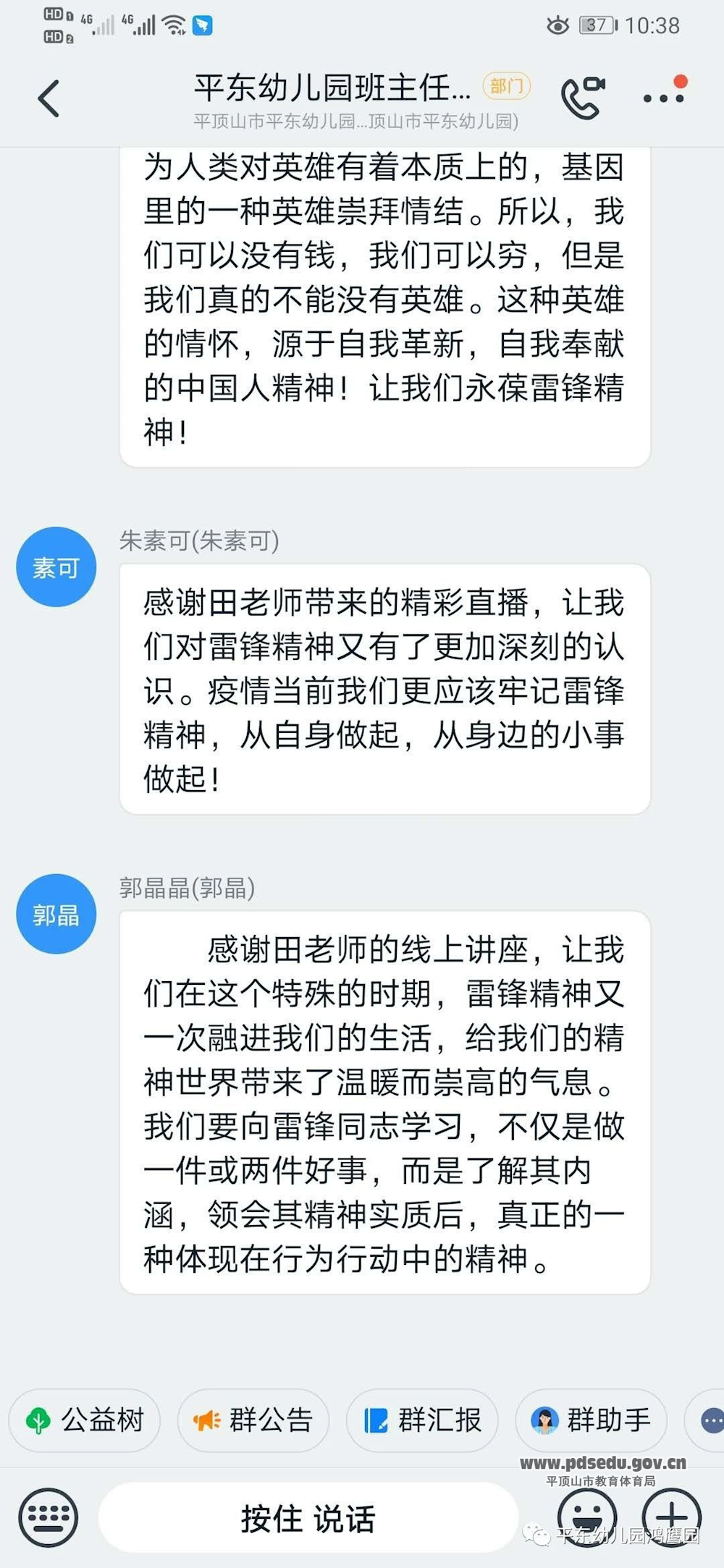 三月,随着春风的吹拂,即将迎来第57个学雷锋纪念日。由于疫情的原因,虽不能相约美丽的校园,但雷锋精神生生不息。在这个抗“疫”非常时期,为了进一步弘扬和传承雷锋精神,3月5日,平东幼儿园结合“钉钉”平台,开展“学雷锋日”线上系列主题活动。从我做起,从身边做起,争做文明宝宝,文明老师。