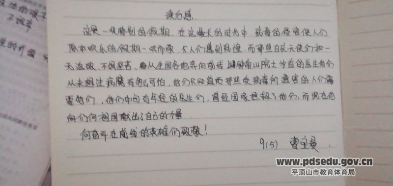 通过信息反馈,全校师生和家长反响强烈!首先,学校老师通过这一封信,感受到了市政府和教育局对此次新冠肺炎必胜的信心和决心;也对政府科学领导部署和决策,再次延迟开学,表示理解和支持,纷纷表示我们在家也要把课给上好,把工作给做好!其次,学生家长们看了这一封信之后,也表示理解和支持延迟开学的决定,也感受到了市政府和教育局对孩子们的关心和爱护,也表示一定克服困难,配合学校和老师,严格督促孩子好好学习,好好上课!学生们则纷纷表示不仅要严格作息习惯,认真学习,更要把此次疫情当作契机,学会在磨砺中成长,在磨难中绽放,更深深懂得了我们每一个人的命运与国家的命运紧紧相连,纷纷表示也要做钟南山院士,李兰娟院士那样的英雄,通过自己的努力拼搏,掌握足够的科学文化知识,当祖国需要的时候,不光有站出来的勇气,更要有能挺身而出的实力!