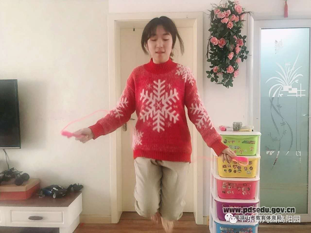 活动三:“健康快乐”一分钟跳绳接力赛。由语言组教研组长郑梦远开始直播发起:“想运动,又不能出门,在家里跳一跳绳,方便又不辛苦,又能达到锻炼身体的效果,可谓是最为经典、简单、实用的锻炼方法。此时此刻,就让我们拿起跳绳运动起来吧!”话音一落,郑梦远开始第一个展示自己的“一分钟跳绳”,拉开了语言组老师“竞技”比赛的帷幕。比赛热闹而紧张,有单人跳、还有全家齐上阵的大绳跳,大家跳出了快乐、跳出了健康。