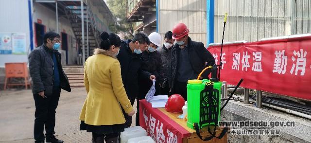 市十一中领导班子详细检查施工工地的疫情防控措施及落实情况,查看人员出入登记、日常体温检测、消杀记录、施工人员的健康证等,对于施工方设计的疫情防控相关表格提出修改建议,要求施工方要完善防疫记录表,切实落实防控措施,严防疫情在校建工程施工人员群体中发生,在保障人员健康的前提下,积极推进工程进度。