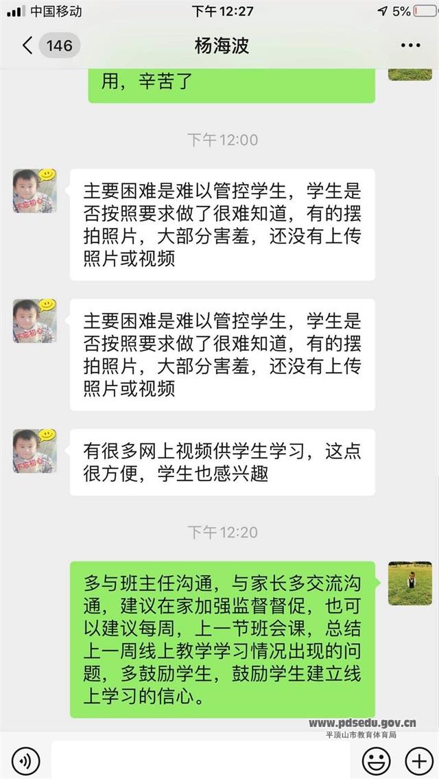 通过与回中联系交流,回中学校经过对学生的逐一摸排,学生大部分能保证线上教学的同步学习,个别因为网络问题不能参与直播学习的的学生,通过有线电视名师课堂等形式进行学习,保证了每位学生学习不掉队。