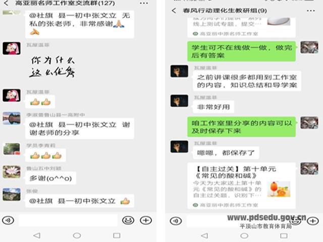 充分发挥名师辐射引领作用,依托中原名师高亚丽工作室,开展网上教学研讨活动。高亚丽老师给大家分享了名师点工作室研发的自主过关在线测试题、导学练、读记材料等教学资源,共享优质教育资源。