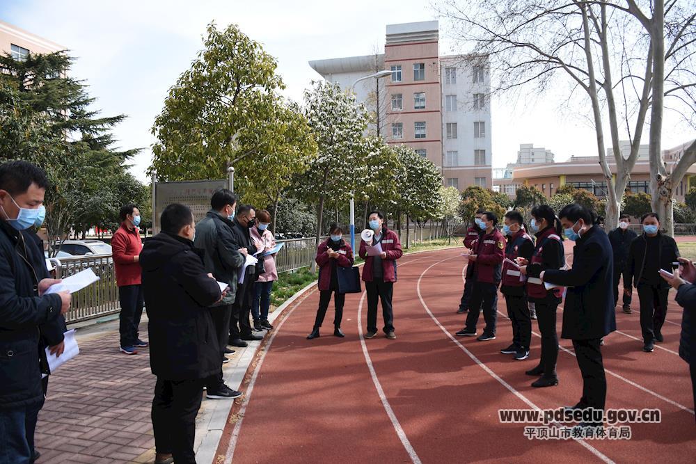市教体局党组成员、副局长张国顺,湛河区疫情防控指挥部教育专班领导、区委常委宣传部长孙宝印,湛河区教体局局长王新道及市、区疾控中心,市教体局相关科室及二级机构负责人到校进行了演练指导。