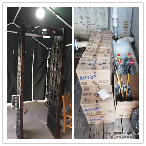 时值抗击疫情特殊时期,防疫物资十分紧俏,校领导千方百计想办法筹措物资,经过不懈努力,目前筹集到下列物资:建成测温消毒安全通道一个,具有测温、消毒和安全检查的功能,手持红外测温仪两个。84消毒液大桶装每桶40斤,共4桶200斤。75%酒精20斤。手动喷雾器2个。一次性医用手套500双。电动喷雾器1个。额温枪50个。75%的酒精一箱35瓶。75%酒精5壶,5000毫升。蓝月亮50箱。消毒喷水壶10个。