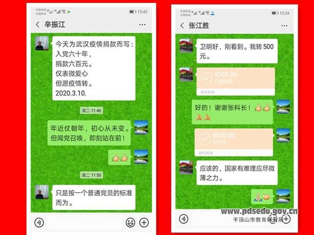 在新冠肺炎疫情防控关键时期,学校广大离退休老干部、老党员积极响应党的号召,在做好自身防护、守好家庭防线的同时,自发捐款支援抗疫一线。有的在做好自我防护的前提下到学校把捐款交给工作人员;有的常年住院,给工作人员打电话委托捐款;还有很多在外地的主动打电话询问捐款事宜,他们通过微信、支付宝或者委托亲属代缴的方式表达着自己的心意。“入党六十年,捐款六百元。仅表微爱心,但愿疫情转。”年近80岁的退休老干部、老党员辛振江老师是一名有着40多年教龄的老党员,在2011年建党90周年时,他就缴纳了2011元党费,为党庆祝生日,在当时传为佳话!这次面对疫情,他积极响应党中央的号召,又一次做出了表率!在平时,他还经常以文寄怀,写下了一首首鼓舞人心的诗句,表达着老党员的战“疫”心声,为逆行的英雄们点赞。“我们一定会按照相关要求,及时上交相关部门,用于疫情防控,绝不辜负各位老同志的重托。”学校组宣科负责老干部工作的相关人员说。