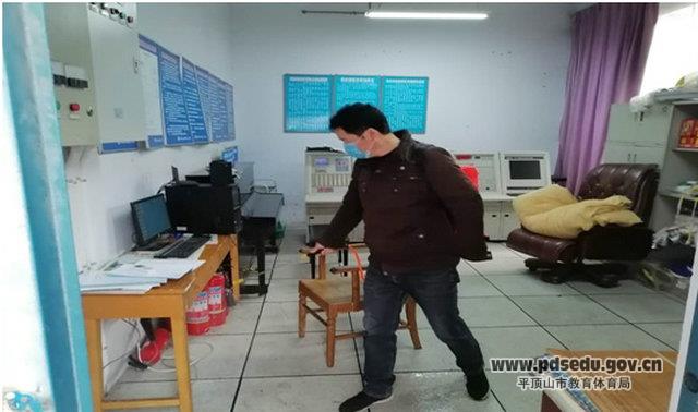 疫情发生后,总务处安排张建伟负责校园消杀工作,从1月26日起,张建伟每天上午8:00开始,背起背负式喷雾器对学校门卫室、值班室、办公楼办公区域及卫生间、教学楼大厅、走廊及卫生间等地进行喷雾消杀,确保校园干净卫生。
