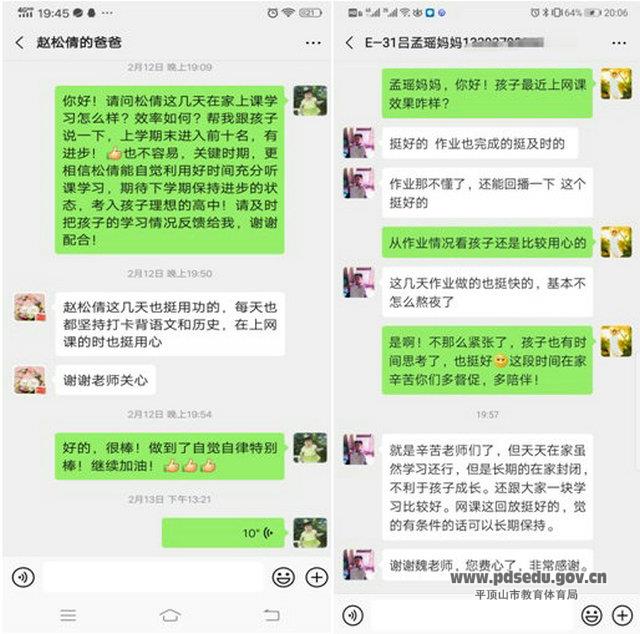 在网络教学中,学生是否能适应网课,课堂上学生是否能够专注,老师是否及时批改作业,老师是否能更多的关注到自己的孩子,是否能经常上课提问等等,都是家长关心的问题。只有及时关注问题,才能及时解决问题,这也就需要班主任要有“千里眼”“顺风耳”,还要有“定海神针”。