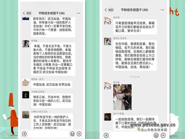 党有号召,团有行动!此次团课同学们热情高涨,积极收看,纷纷发言。19服装赵桂雪说道:“情系江城,天佑中华,致敬所有战斗在一线的人们。武汉加油,中国加油!”,团干部卢梦甜说道:“一起战胜疫情,我们一起期待摘下口罩的笑脸,迎接最美的春天,中国加油!”此次团课展现出同学们面对疫情携手行动,为打赢疫情防控战坚定信心!团课上,同学们纷纷表示,要把这次的疫情当作学习的机会,静下心来想一想自己的人生规划,努力充实自己,锻炼自己,做好能做的、该做的事情,在疫情中茁壮成长,充分展现市财经学子良好的精神面貌。