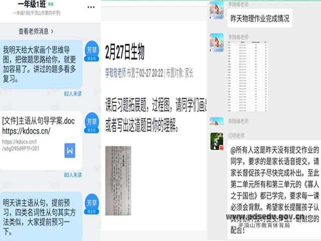 “老师假期愉快,开学再见!”上学期结束时学生们欣喜的告别还在耳畔,但是,一场始料未及的新冠肺炎病毒疫情,将全校师生挡于校门之外。相隔网络,虽然不能和可爱的学生们面对面上课交流,但市四中高一(1)班的各位任课老师一如既往地坚守立德树人使命,勇担教书育人责任,通过各种形式加强对学生的教育。