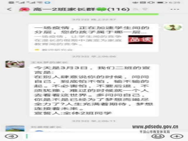 为了动员所有的师生投入到停课不停学的状态中,市实验高中高一年级组发出《致全体高一教师的倡议书》,倡议全体高一同仁行动起来,用责任和担当扛起线上教学的重任,用勤勉和专业点燃学生学习的激情。接着,市实验高中高一年级组又发出了面向全体高一学子的倡议书,鼓励大家停课不停学,停课更要好好学,要用自己的实际行动高效学习,实现弯道超车。激情奋进的文字激发了全体高一师生凝心聚力,投入到线上的教与学活动中。