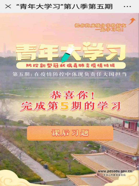 3月15日,市二中共青团发出倡议,号召全校共青团员积极响应团市委的号召,参加河南省“青年大学习”网上主题团课第八季第5期学习活动。