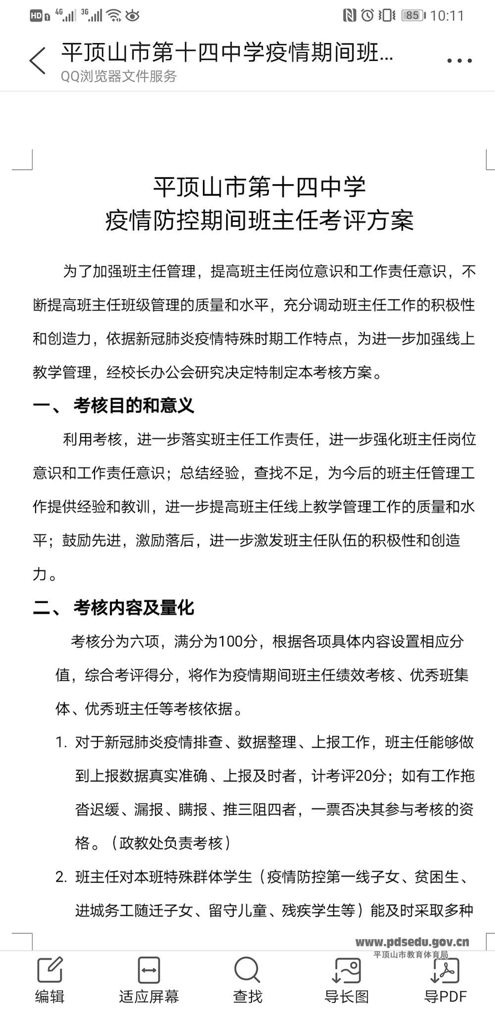 为贯彻落实上级教育主管部门“停课不停学”总要求,进一步提高班主任线上教学管理工作的质量和水平,强化班主任岗位意识和工作责任意识,3月16日,市十四中依据新冠肺炎疫情特殊时期工作特点,制定并公布了疫情防控期间班主任考核方案。