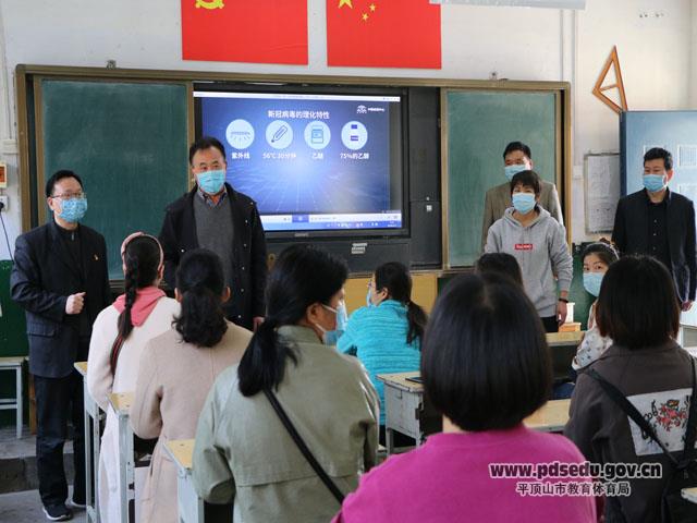 为贯彻落实市教体局疫情防控的决策部署,确保开学后的各项工作安全有序进行,3月21日上午,市十二中举行了开学疫情防控演练。市教体局副调研员许钝到现场全程指导,市教体局发规科赵宏亮科长、市教体局学校卫生保健站王磊站长、新华区西市场街道纪检委书记孟亚洲、西市场街道办公室吕军伟主任、三矿医院董副院长、三七街社区宋春丽书记等领导前来观摩指导,市十二中校长孙新志带领领导班子成员、中层干部和全体班主任参加演练。