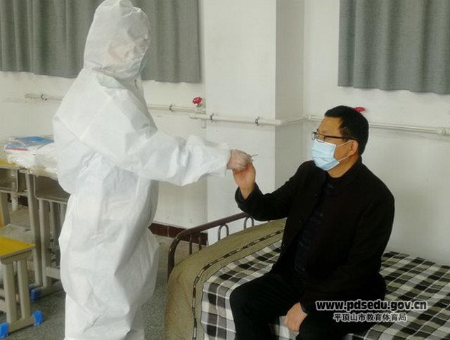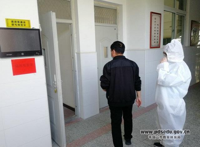 此时,在“隔离观察室”,医务人员已经身穿防护服,整装待命。当“学生”被带到后,迅速用玻璃体温计进行再次测温,然后,电话告知与和学校联系的医院医生,同时,把突发情况上报市教体局……