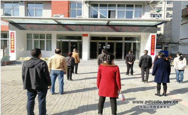 3月18日下午,市八中开展突发疫情应急演练活动。演练过程分为进校门、进教室、隔离观察处理、错时错峰就餐四个环节,历时110分钟,参演人员在演练中明确了自己的职责、熟悉了应急处置的流程,达到了演练的目的。