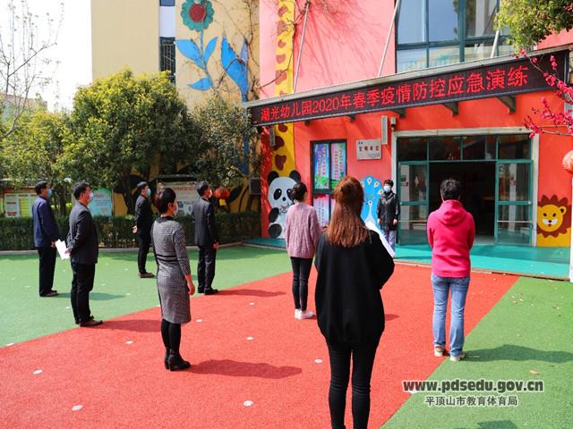 疫情防控,重任在肩。为提高全园教职工预防新型冠状病毒疫情意识,熟悉并掌握日常工作操作流程,提高应对突发情况处置能力,湖光幼儿园于2020年3月23日开展开学前疫情防控演练工作,幼儿园中层以上领导和部分后勤人员参加了此次演练。