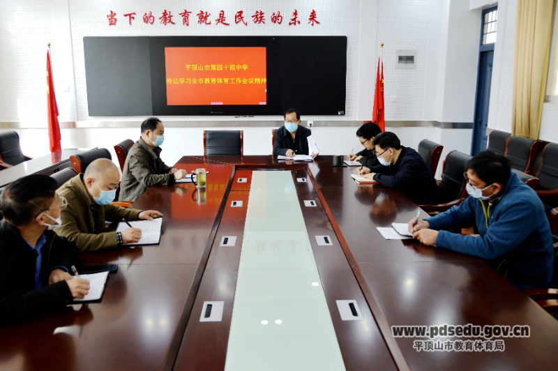 3月20日下午,市四十四中在二楼小会议室召开支委扩大会议,传达学习全市教育体育工作会议精神,学校班子成员和部分中层领导参加,校长张宏伟主持会议。