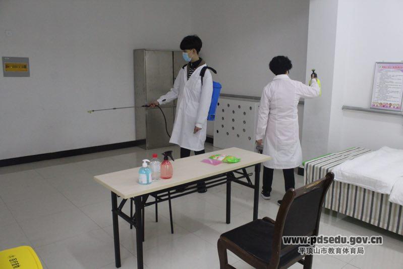 上午9:00整,演练正式开始。模拟演练一:教职工入园检查。入园前,教职工在园门口每人间隔1.5米有序排队,保健医在园门口处的体温测量点,对教职工测量体温;检测体温正常后,入园踩踏消毒脚垫,一人一消;再使用免洗消毒液进行手部消毒;最后做好记录后方可进园。模拟演练二:教师突发高热情况。教师有发热现象,第一时间报告保健医,保健医对教师进行体温检测,及时报告疫情负责人,并将发热教师送往隔离室,在隔离室内,进行二次体温检测,确认有发热情况后,疫情负责人拨打120,将教师送往医院就诊。后勤负责人组织相关人员对隔离室和发热教师所在班级进行全面消毒,确保其他人员健康安全。模拟演练三:食堂人员进入食堂健康检查。进入食堂前,每人间隔1.5米有序排队,食堂负责人在门口测量体温,体温正常后踩踏消毒脚垫,使用消毒液进行手部消毒,做好登记后进入食堂,最后用洗手液和流动水洗手后方可在食堂进行工作。