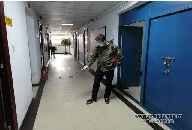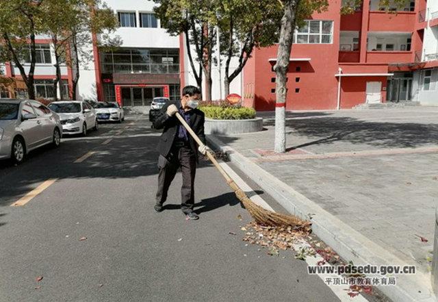 曹亚东还安排后勤工作对门卫室、值班室、教学楼等重点部位实施喷洒消毒,清扫了主干道、教学楼前的枯枝落叶,保持了校园的干净整洁。