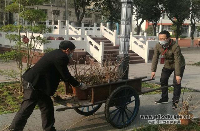 碰头会后,曹亚东立即安排,带领后勤主任马洪涛及其他工作人员给绿化带绿植、草皮浇返青水,移栽越冬花草,修剪植物景观。