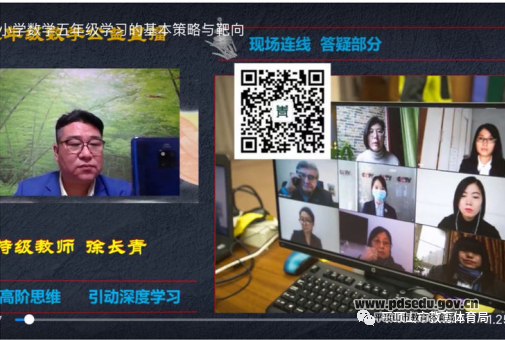 第一讲由天津市红桥区教师进修学校副校长、天津市小学数学专业委员会副理事长徐长青老师主讲,围绕《理清概念以走向高阶思维,把握本质引发深度学习——小学数学五年级学习的基本策略与靶向》做了详细和深入地讲解,徐老师强调,师生关系要从“容”走到“融”,小组合作要从“地缘”走向“知源”,同时要以师“顿”促生“敏”,更重要的是要简约教学,从冗繁走向凝练,从紧张走向舒缓,从杂乱走向清晰,从肤浅走向深遂,回归生活,回归数学本身。随后他又以五年级数学教材为例,做了深度全面地分析,简练概念,简化教学知识,突出教学重难点,让我们的数学课不再枯燥无味!