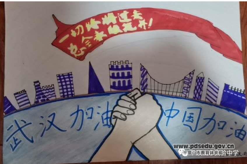 学校七八年级以班为单位,在各班主任的指导下,通过互联网开展了绘战“疫”,画英雄,视频录祝福活动。同学们以笔为剑,以纸为盾,向奋斗在“疫”线的工作人员致以崇高的敬意;用一个个视频录下对武汉的祝福、对祖国的祝愿,传递必胜信心,为打赢疫情防控阻击战积极贡献力量。