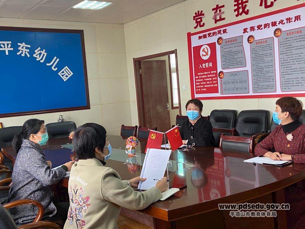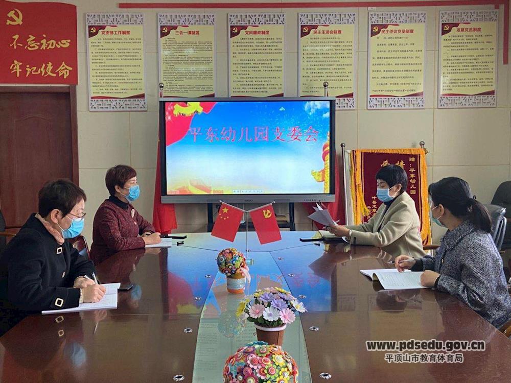3月30日上午,平东幼儿园党支部委员召开支委会,党支部书记、园长赵惠芳主持会议。全体支委会成员参加。